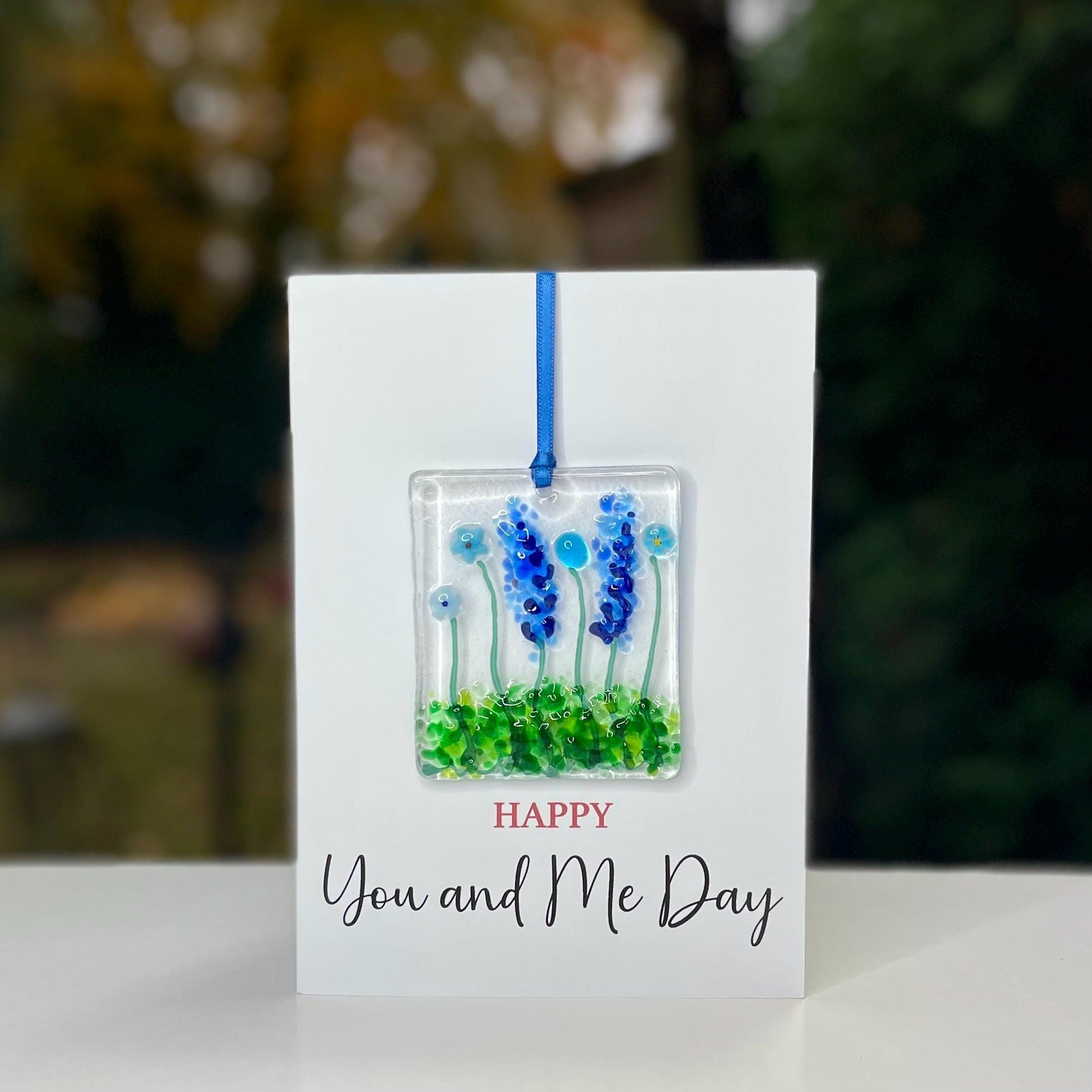Happy You and Me Day card with detachable handmade glass keepsake